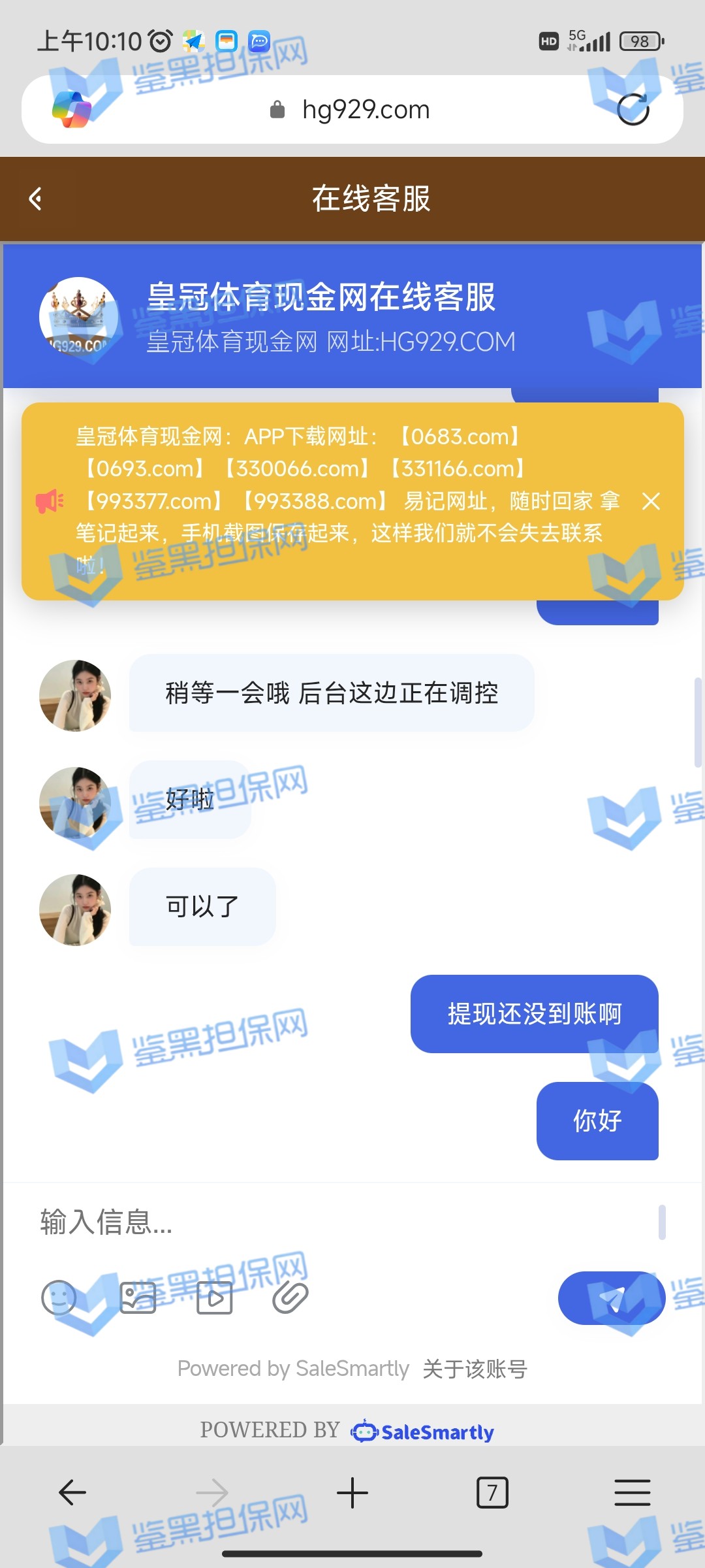 2、鉴黑担保网维权专员联系该平台相关负责人核实情况,对方表示该会员存在套彩金行为,为了避免平台损失,故不欢迎此类用户进行游戏,维权专员要求提供异常投注注单进行复查,对方无法提供,代理专员存在以高额彩金为噱头引诱用户存款,行为恶劣。